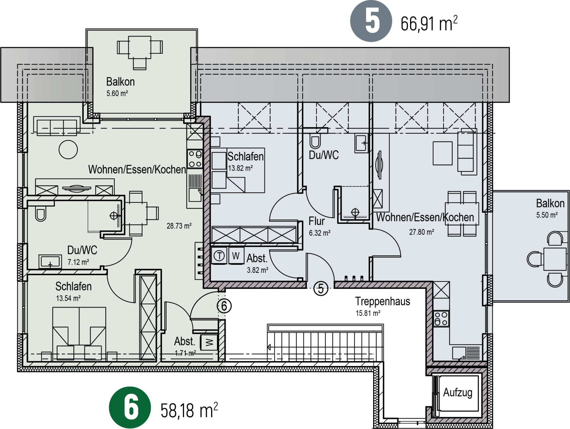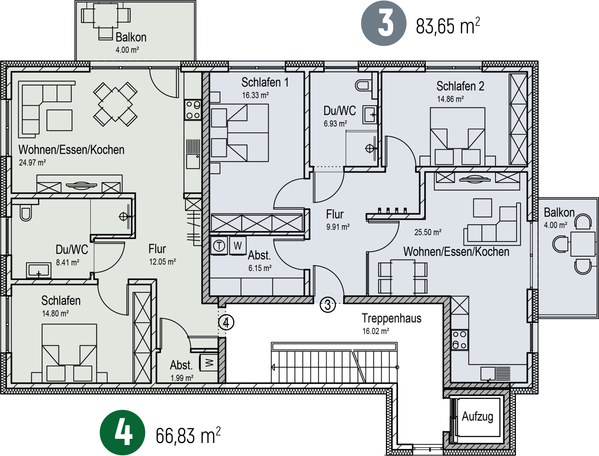 8 Wohnungen von ca. 43 - ca. 89 qm