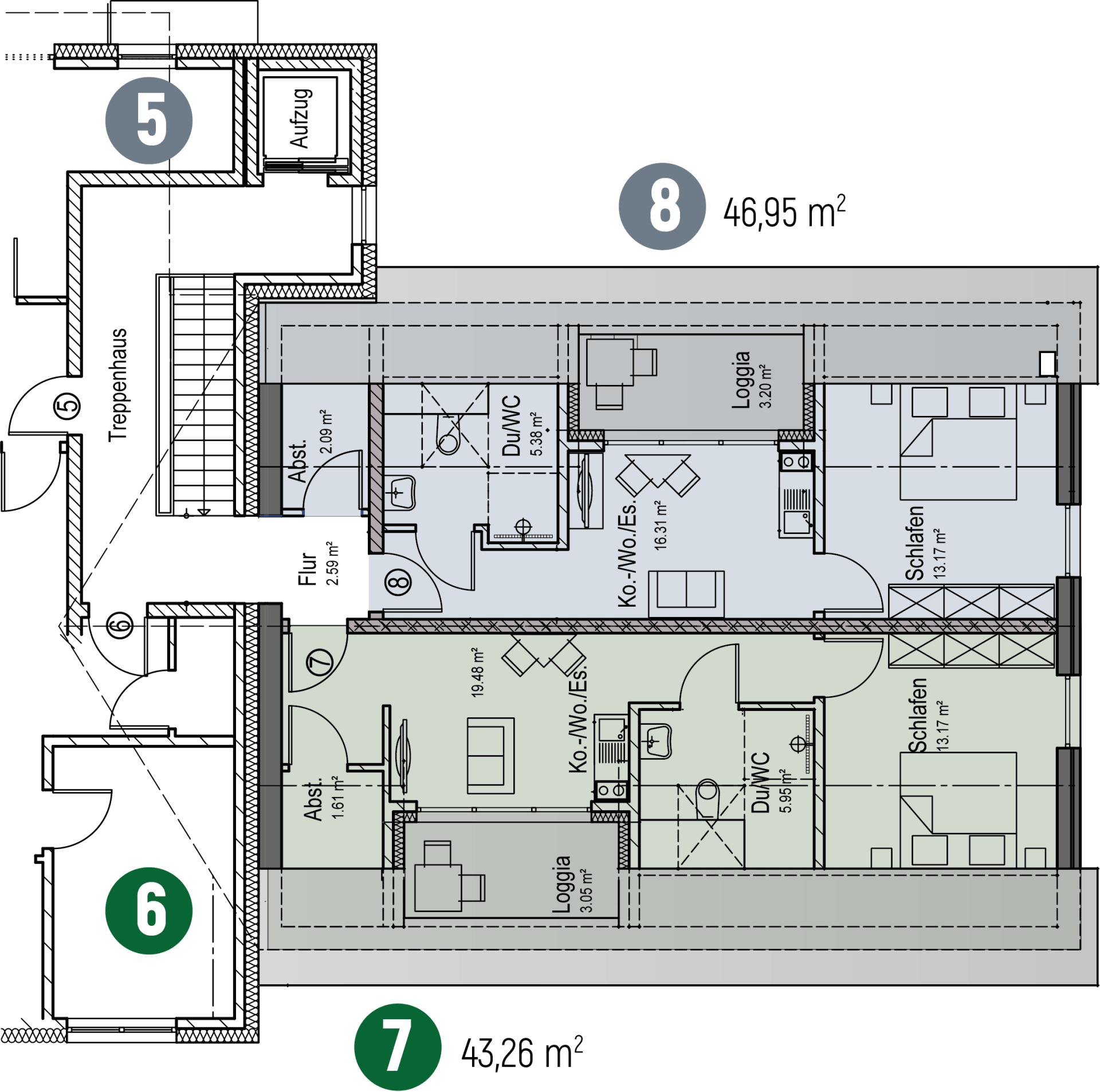 8 Wohnungen von ca. 43 - ca. 89 qm